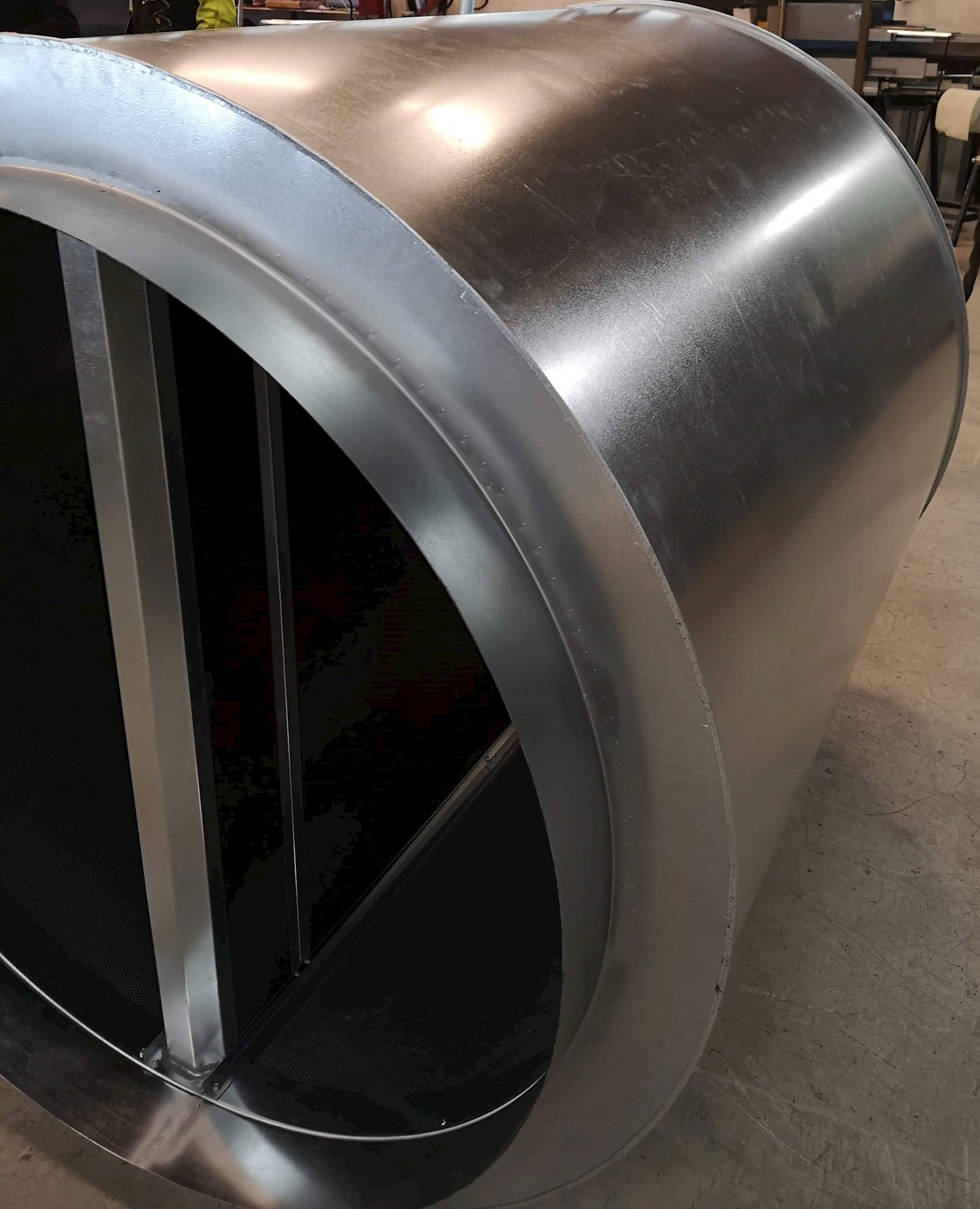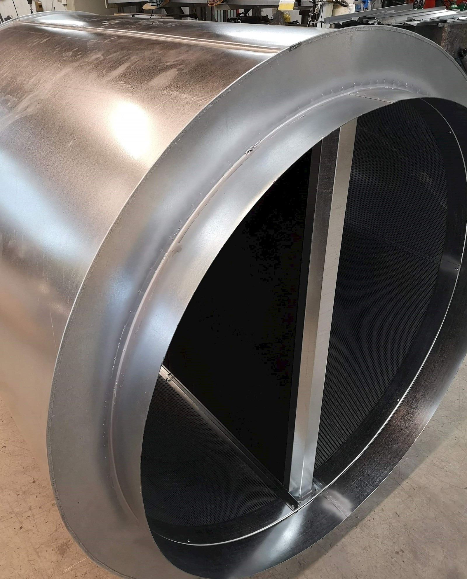 Standardutførelse i galvanisert stålplate. Perforert innerrør og ytre mantel i hel